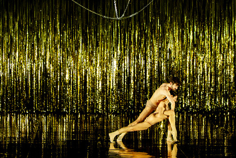 Μέσα από χρυσές αντανακλάσεις, κάθετες οθόνες, λέξεις-συνθήματα και έναν πολυέλαιο μεγάλης κλίμακας του εικαστικού Πέτρου Τουλούδη, η παράσταση χορού Χρυσή εποχή υπογράφει τη διακήρυξη μιας νέας πίστης που τοποθετεί τα πιστεύω της όχι στον θεό, αλλά στον άνθρωπο, όχι «εν τοις ουρανοίς» αλλά «επί της γης» – μια διακήρυξη που δεν υπόσχεται τη σωτηρία, αλλά εξασφαλίζει την έξοδο από την κόλαση.